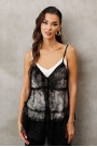 Блузка из кружева без подкладки на регулируемых бретелях и асимметричным низом. Полочка с V-образным...