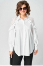 Блузка женская шикарная красивая нарядно-повседневная свободного силуэта выполнена их хлопка в сочетании с элегантным кружевом. Вырез горловины воротник на стойке рубашечного типа, рукав втачной с декоративным подрезом из кружева по низу на притачной манжете. Застежка до верху на обметанные петли и пуговицы. Низ блузы фигурный, в боковых швах обработан разрезы.