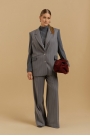 Жакет прямого силуэта. Вырез горловины оформлен воротником пиджачного типа. Застежка - однобортная на петли с пуговицами. Рукава - втачные, двухшовные из отделочной ткани. На передних половинках имеются прорезные карманы с клапанами из отделочной ткани. Изделие посажено на подкладку.