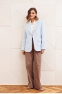 Костюм состоит из жакета и брюк из джинсовой хлопковой ткани.