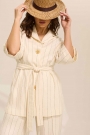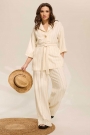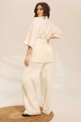 Брюки прямые на резинке со шнурком, свободные, прямые, с боковыми карманами. Дополняет костюм съемный пояс.