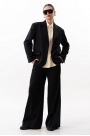 Костюм женский. Жакет прямого силуэта, с увеличенной линией плеч, с отрезным бочком, на левой полочке листочка. Жакет на поливискозной подкладке. Спереди прорезные карманы с клапаном. Спинка со средним швом, отрезным бочком. Воротник пиджачного типа с отложным лацканом. Рукав втачной, двухшовный, со шлицей и пуговицами. Брюки прямого свободного силуэта. Пояс на резинке, по переду боковые наклонные карманы. Длина брюк по боковому шву с поясом 108 см. Параметры брюк в готовом виде в 44 р.: обхват талии +-66 см (с резинкой ), обхват бедер 108 см. Длина жакета по среднему шву спинки 68 см. Длина рукава от удлиненного плеча 60 см. Параметры жакета в готовом виде в 44 размере: Ширина изделия на уровне глубины проймы 106 см, ширина на уровне линии талии 103 см, ширина изделия на уровне линии бедер 106 см. Ширина рукава по низу 32 см. На фото: топ S-7635, блузка S-7636 Длина брюк по боковому шву с поясом 108 см. Параметры брюк в готовом виде в 44 р.: обхват талии +-66 см (с резинкой ), обхват бедер 108 см. Длина жакета по среднему шву спинки 68 см. Длина рукава от удлиненного плеча 60 см. Параметры жакета в готовом виде в 44 размере: Ширина изделия на уровне глубины проймы 106 см, ширина на уровне линии талии 103 см, ширина изделия на уровне линии бедер 106 см. Ширина рукава по низу 32 см. На фото: топ S-7635, блузка S-7636