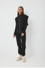 Жилет:– свободный силуэт – металлическая разъёмная молния – спущенное плечо Лонгслив:- прилегающий силуэт- воротник-стойкаБрюки: – приталенный силуэт – без карманов – пояс с эластичной тесьмой – низ брюк на эластичной тесьме