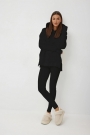 Худи: – свободный силуэт – манжеты-митенки на рукаве – двойной капюшон – спущенный рукав, одношовный – низ изделия обработан кашкорсе – по бокам разрезыЛеггинсы: – приталенный силуэт – на эластичной тесьме