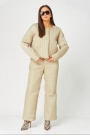 Жакет на синтепоне: – свободный силуэт – воротник круглый – спущенный рукав, одношовный – застёжка на потайные пробивные кнопки – на подкладке Брюки на синтепоне: – прямой силуэт – пояс с эластичной тесьмой