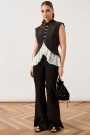 Брюки из плотной костюмной ткани, длинные, силуэта «клёш» от колена. Посадка на притачном поясе. Пер...