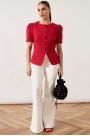 Брюки из плотной костюмной ткани, длинные, силуэта «клёш» от колена. Посадка на притачном поясе. Пер...