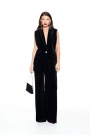 Брюки из бархата на трикотажной основе, свободного объема, расширенные к низу. На передних половинках выполнены боковые карманы с отрезным бочком и встречные складки. На задних половинках талиевые вытачки. Застежка – гульфик на молнии. Пояс притачной, с резинкой по спинке, застежкой на крючок и потайную пуговицу.