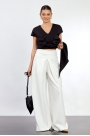 Брюки-палаццо:- прямой силуэт, расширенный к низу- высокая посадка- широкий притачной пояс- 2 широки...