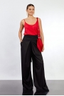 Брюки-палаццо:- прямой силуэт, расширенный к низу- высокая посадка- широкий притачной пояс- 2 широки...