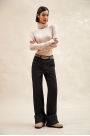 Брюки из джинса:- силуэт прилегающий, клеш от колена;- средняя посадка;- спереди и сзади кокетка;- с...