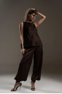 Брюки - 'алладины', широкие, с поясом на резинке. Низ брюк собран на резинку. Карманы в боковых швах. Шелковистая ткань делает образ стильным и завораживающим. Брюки 'алладины'- современный тренд благодаря сочетанию комфорта и стиля. Длина брюк с поясом +- 106 см Ширина брюк по низу до резинки в 44 р.+- 69 см. Обхват резинки по низу брюк в 44 р.: +-25 см. Параметры брюк в готовом виде в 44 р.: обхват талии 68 см, обхват бедер 102 см.