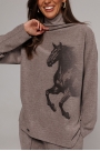 Джемпер из трикотажного полотна с велюровым эффектом прямого силуэта со спущенной линией плеча. Рукав втачной. По переду печать 'Лошадь' и нашивка с гравировкой 'BUTER'. Низ джемпера по переду фигурный ассиметричный. Внизу по правому боковому шву обработан разрез. Воротник-стойка цельнокроеный.