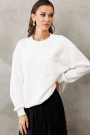 Джемпер из технологичного трикотажного полотна с эффектом peach. Прямого силуэта с втачным рукавом и спущенной линией плеча, с манжетой из основной ткани по низу рукава. По переду вышивка 'Орнамент'. По горловине и низу изделия притачная планка из основной ткани.