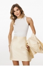 Джемпер выполнен из трикотажного полотна в рубчик. Джемпер приталенного силуэта, длиной выше линии бедер. Перед и спинка цельные. Горловина округлой формы. Плечевой шов заужен. Горловина и пройма обработаны бейками из основной ткани.