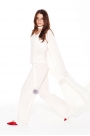 Костюм женский 3-предметный из трикотажного полотна, состоящий из топа, брюк и кардигана.