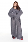 Кардиган свободного объема, прямого силуэта, со съемным поясом из основной ткани. Пояс декорирован пришивными помпонами. Вырез горловины и борта обработаны цельнокроеной планкой. Боковые швы заканчиваются разрезами. Рукав втачной, широкий, длинный.