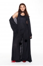 планкой. Боковые швы заканчиваются разрезами. Рукав втачной, широкий, длинный.