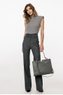 Брюки выполнены из костюмной ткани. Брюки покроя 'клеш', на притачном поясе, длиной в пол. Спереди з...