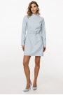 Платье выполнено из костюмно-плательной ткани. Платье Х-образного силуэта длиной выше линии колена. По переду лифа обработаны плечевые вытачки и нагрудные вытачки от горловины. Застежка на потайную молнию в среднем шве спинки. Горловина округлой формы в виде цельнокроеной стойки. Плечевой шов удлинен. Рукав втачного покроя, одношовный. Юбка прямого силуэта с расширением по линии бедер. Платье на притачной по низу подкладке.