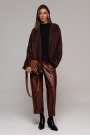Кардиган из трикотажного полотна, свободного силуэта, слегка заужен к низу, со спущенной линией плеча и втачным рукавом. Полочка с V-образным вырезом и центральной застежкой на пришивные кнопки. Без подкладки.