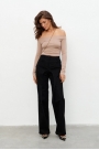 Джемпер черного цвета из эластичного трикотажа, который идеально подчеркивает силуэт. Модель с открытыми плечами и длинными рукавами добавляет изысканности и женственности. Отрезная деталь по верху гарантирует идеальную посадку на фигуре.