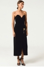 Юбка из ткани с эффектом бархата, в черном цвете. По левой стороне юбки разрез, юбка на запах, декор...