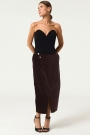 Юбка из ткани с эффектом бархата, в черном цвете. По левой стороне юбки разрез, юбка на запах, декор...