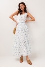 Юбка шифоновая А-силуэта на резинке с притачной кокеткой, которая отстрочена резинками. Юбка с 2-мя притачными слегка присборенными воланами. Юбка на подкладке.