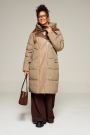 Капюшон с манишкой съемный (на потайных пуговицах) умеренного объема с дополнительной двусторонней застежкой молнией по центру. По периметру капюшона протянут шнур в цвет изделия с декоративными металлическими фиксаторами.