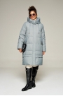 Капюшон умеренного объема. По периметру капюшона с внешней стороны вставлена тесьма с декоративными наконечниками. Застежка центральная на двустороннюю молнию от верха до низа под планкой и кнопки по краю борта. Низ изделия ровный.