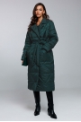 Пальто стеганное прямого силуэта, двубортное, длинной миди, с втачным одношовным рукавом. Полочка с застежкой на пришивные кнопки и накладными карманами. Воротник пиджачного типа с отрезной стойкой. Пальто на подкладке. Пояс в комплекте.
