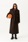 Пальто из пальтовой ткани, прямого силуэта, свободное, со спущенной линией плеча, с центральной двубортной застежкой на петли и пуговицы, отложным воротником и лацканами пиджачного типа, на подкладке. Полочки с отрезными бочками и карманами в швах. Спинка со средним швом и шлицей, с отрезными бочками и плечевыми вытачками. Рукав втачной, длинный, двухшовный. В комплекте пояс из основной ткани.