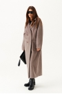 Пальто из трикотажного полотна, прямого силуэта, свободное, с центральной двубортной застежкой на петли и пуговицы, отложным воротником и лацканами пиджачного типа, на подкладке. Полочки с накладными карманами. Спинка цельная. Рукав втачной, длинный, одношовный.
