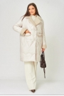Пальто стёганое, прямого силуэта: – длина миди – воротник пиджачного типа (из букле) – двухбортное – по переду — прорезные карманы с листочкой – рукав спущенный, одношовный – манжеты из букле – по переду — двубортная застёжка – застёжка на потайные пробивные кнопки – на подкладке – утеплитель Isosoft 250 г