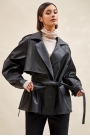 Тренч укороченный из экокожи: