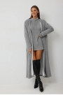 Кардиган: – свободный силуэт – V-образный вырез без застёжки – одношовный рукав Платье: – приталенный силуэт – горловина-стойка – плечевые накладки