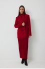 Жакет: – свободный силуэт – на подкладке – рукав втачной, двухшовный; на рукаве петли-пуговицы – застёжка петли-пуговицы – двухбортный – карманы по переду с клапаном – воротник пиджачного типаПлатье макси (ткань джерси): – приталенный силуэт – потайная молния по середине спинки – разрез снизу по спинке – без рукавов – горловина-стойка