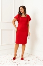 Платье прилегающего силуэта средней длины выполнено из костюмного смесового полотна. Перед с двумя вертикальными рельефами от плеча, которые заканчиваются вытачкой и с двумя горизонтальными подрезами на уровне талии. Спинка разрезная по среднему шву, с двумя вертикальными вытачками и с двумя горизонтальными подрезами на талии. Внизу среднего шва спинки для удобства в динамике предусмотрена шлица.