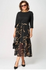Платье женское нарядно-повседневное полуприлегающего силуэта до талии. Выполнено из трикотажного полотна в сочетании с шифоном. Вырез горловины круглый на обтачке. По спинке застежка капелька на навесную петлю и пуговицу. Рукав втачной 7/8 по верху со встречной складкой. Платье отрезное по талии, верх из трикотажного полотна , низ платья юбка со сборкой. декором платья служит съемный пояс в цвет юбки.