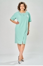 Платье В-образного силуэта, с фигурным вырезом по переду, со смещённым центром по переду со шлицей. Спущена линия плеча, с в точным рукавом. По переду две декоративные пуговицы. Спинка разрезная, низ платья обработан открытым срезом, на машине потайного стежка.
