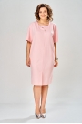 Платье В-образного силуэта, с фигурным вырезом по переду, со смещённым центром по переду со шлицей. Спущена линия плеча, с в точным рукавом. По переду две декоративные пуговицы. Спинка разрезная, низ платья обработан открытым срезом, на машине потайного стежка.