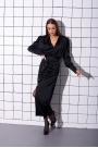 Элегантное, длинное платье из струящейся ткани с ненавязчивым блеском прилегающего силуэта. В платье V-образного вырез, рукав втачной, длинный, на манжете, застёгивается на пуговицы. Линия плеча расширена. Платье имеет потайную застёжку молнию и отдельный декоративный пояс.