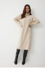 Трикотажное платье прямого силуэта, сочетающее в себе максимальный комфорт и актуальный минималистичный дизайн. Модель выполнена из мягкого трикотажного полотна с рубчиком, что добавляет фактурности и мягкости. Горловина с высокой воротником - стойкой (15 см), который выглядит стильно и дарит дополнительное тепло. Благодаря прямому силуэту, платье обеспечивает свободную и универсальную посадку. Спущенная линия плеча и длинный рукав, чуть зауженный к низу, создают расслабленный и уютный объем. Это платье станет незаменимой основой вашего осенне-зимнего гардероба, легко адаптируясь под любой стиль с помощью аксессуаров и обуви.