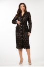Платье, с центральной застежкой на петли и пуговицы по планке переда, с втачным воротником и отложными лацканами. На уровне линии бедер расположены накладные карманы с клапанами. .Полочки с нагрудными вытачками. По боковым швам расположены шлевки для съемного пояса. Платье двуслойное , со съемным поясом.