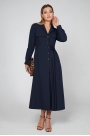 Просто фантастика! Это изысканное платье длиной мидакси с женственным кроем идеально дополняется аккуратным воротником с лацканами и пояском с пряжкой. Дизайн дополняется карманами с клапанами на груди, спущенной линией плеч с притачными рукавами с манжетами, которые при желании можно подвернуть и зафиксировать при помощи пат и пуговиц. Застежка на пуговицы по всей длине придаёт ему яркий штрих, а карманы в боковых швах добавляют функциональности. Вертикальные складки по детали переда завершают шикарный образ. Высококачественная испанская эластичная ткань также гарантирует износостойкость.