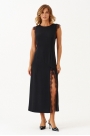 Женское платье из струящейся ткани — идеально для повседневного образа. Чёрное макси-платье, выполненное из мягкой и удобной струящейся ткани, отлично подойдет для ежедневной носки. Модель отличается криволинейной линией по переду и двумя нагрудными и талиевыми вытачками, что создает элегантный силуэт. Передняя нижняя часть платья украшена разрезом с кружевными вставками, добавляющими нежности и женственности. Спина с средним швом, застежкой-молнией и талиевыми вытачками обеспечивает хорошую посадку. Расширенная горловина и короткие рукава с декоративной кружевной отделкой делают образ еще более утонченным и женственным.