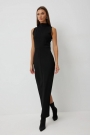 Платье макси (ткань джерси): – приталенный силуэт – потайная молния по середине спинки – разрез снизу по спинке – без рукавов – горловина-стойка