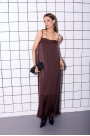 Платье прямого силуэта, длинное, на регулируемых бретелях. На переде платья расположен декоративный лиф с кружевом, на спинке вырез с фиксирующим шнурком.