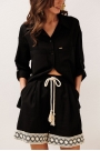 Шорты на притачном отстроченном поясе со втянутым декоративным шнурком. По переду со складками, от притачного пояса и карманами в боковых швах с наклонным входом. По низу шорт притачено кружево.